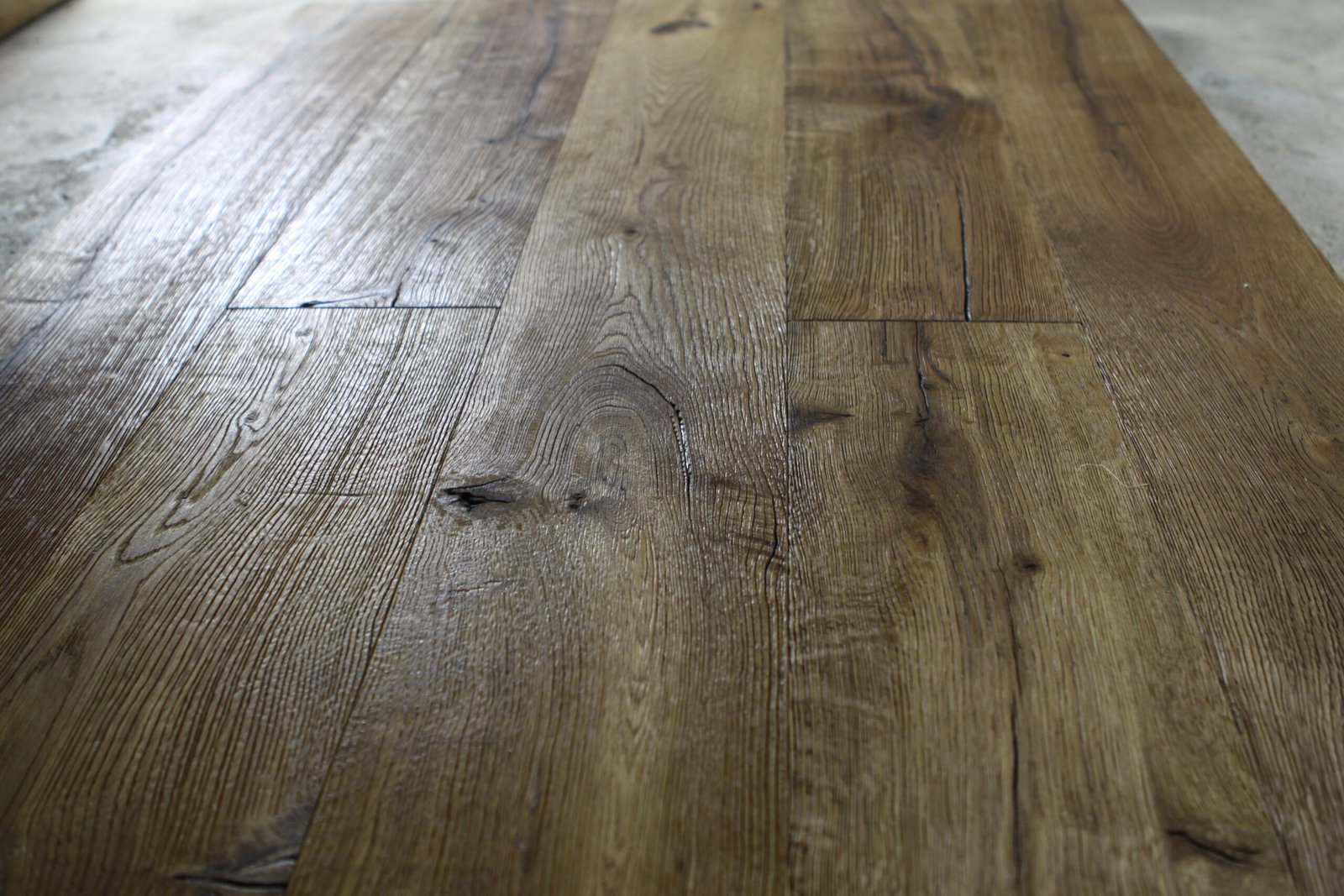 Surface treatments such as UV lacquer, natural oil, smoked finishes, and reactive stains create different visual effects.