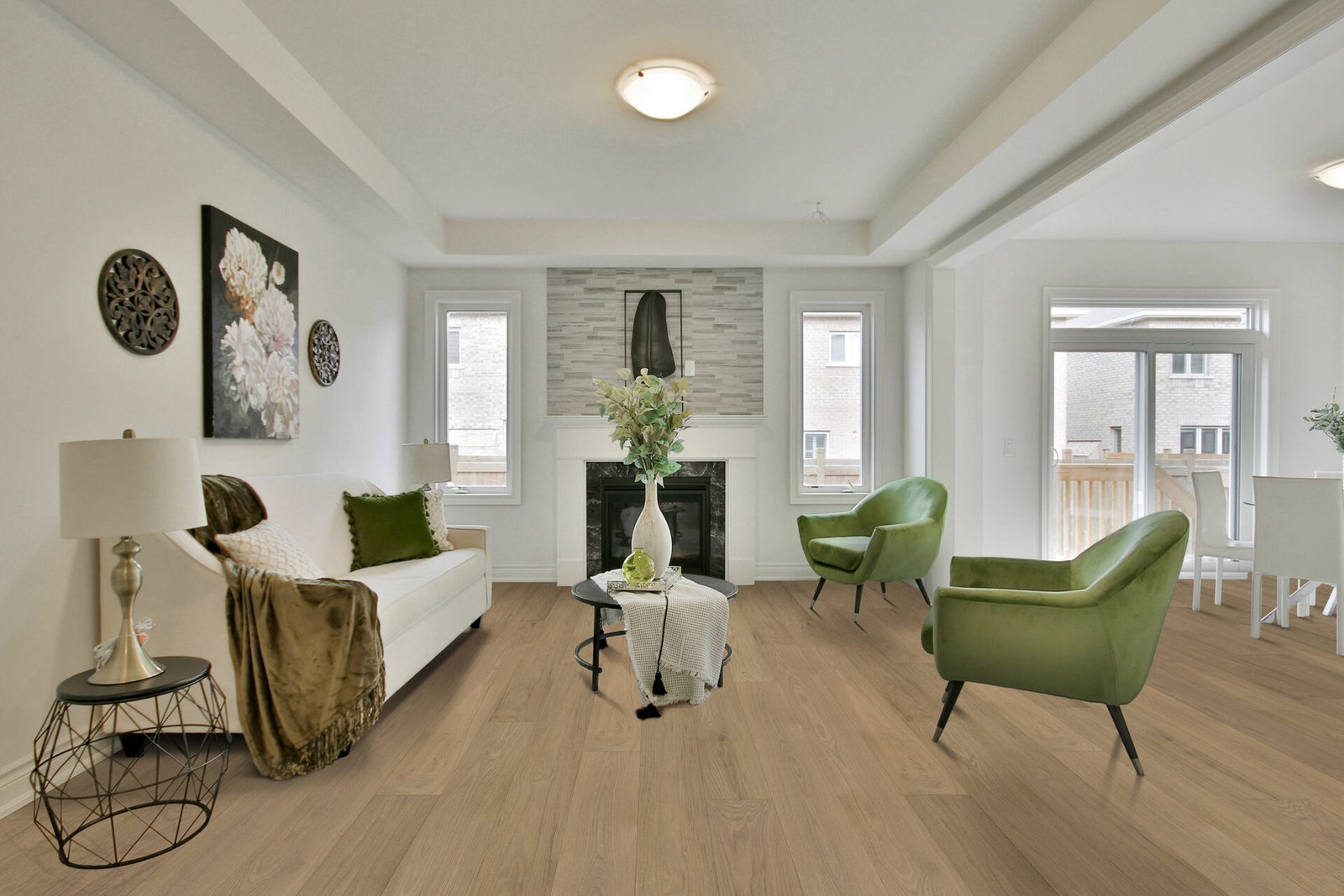 Elegant American Oak Engineered Flooring in a soft ivory tone. Crafted from imported logs with no bleaching, ideal for high-grade project and wholesale use.