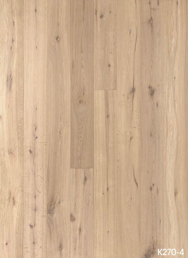 A soft natural sand Chinese Oak Three-Layer Engineered Flooring featuring a clean surface, handcrafted repairs, durable PPG UV coating, and CARB2 certification. Ideal for modern homes, minimalist spaces, and premium commercial interiors.